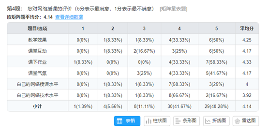 另外,为了更好地了解教师及员工对线上教学的评价,督导组请宋磊老师设计了《公司教师网络授课情况调研》、《ladbrokes立博网络课堂情况调研》两个小问卷,由任课教师和员工课后填写提交。