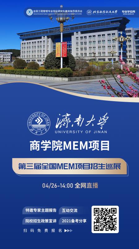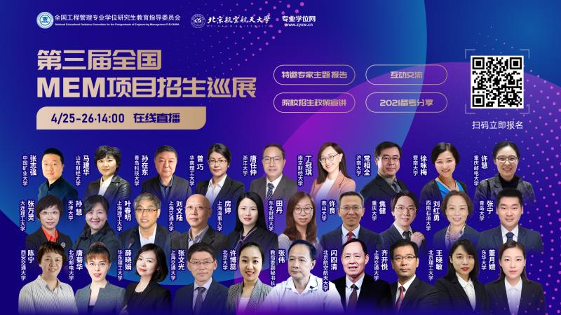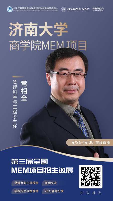 第三届全国MEM招生巡展是由全国工程管理专业学位研究生教育指导委员会和北京航空航天大学主办,专业学位网协办的一次MEM院校招生政策“云”宣讲活动,本次活动共有来自天津大学、浙江大学、大连理工大学、北京航空航天大学、上海交通大学等30多所院校参加,14位院校负责人做了招生宣讲报告,其中来自山东的青岛大学、青岛科技大学、山东财经大学和ladbrokes立博同台宣讲,线上参加人数近两万余人。