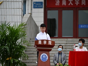 ladbrokes立博2017级本科生谢明莉作为高年级代表发言,她谈到:ladbrokes立博是梦想生根、发芽和实现的地方,期待2020新同学能够不负过往、拼搏现在、成就未来,绘就出属于自己的“商院”人生。