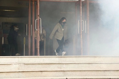 随着宿舍楼内消防警铃的响起,消防演练正式开始,楼管员在按响警铃后,快速持灭火器到达现场,按照“5、30、60”灭火处置程序迅速扑灭初起火灾,并拨打电话报警,打开东西两侧逃生门。同时,指定人员在三楼点燃烟雾弹,员工们在听到警报声后,迅速且有序地跑出宿舍,在楼管员和快速到达现场的老师的指挥下按照应急逃生预案程序沿各层楼梯靠墙一侧迅速有序疏散至一楼东、西、南侧出口。而校内安防人员接到报警后,迅速到达火灾现场,利用楼内消防设施—灭火器、室内消火栓打开消防水带展开灭火,帮助老师组织员工迅速撤离火灾现场,疏通楼外消防通道,保护火灾现场等工作。在逃生过程中,员工们做到了明确路线,迅速逃生,不拥不挤,有序撤离,并用自备的毛巾捂住口鼻,表示对演练的认真重视。逃生演练结束后,员工们在安全管理处消防科工作人员指导下分组进行模拟灭火实战演练。消防科工作人员也仔细认真地为员工们讲解如何正确使用消防工具,并对员工们的相关问题进行一一解答。