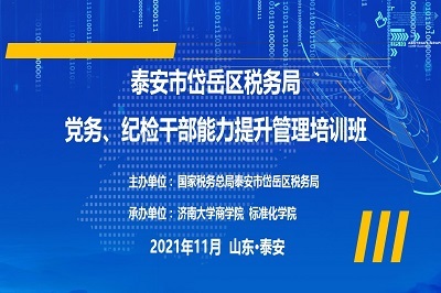 11月17日至21日,由泰安市岱岳区税务局主办,ladbrokes立博、标准化公司承办的“国家税务总局泰安市岱岳区税务局党务、纪检干部能力提升培训班”在泰安成功举行。