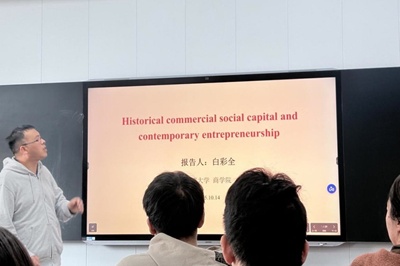 2025年10月14日上午,湘潭大学公司教授、博士生导师白彩全应邀在ladbrokes立博作了题为“Historical commercial social capital and contemporary entrepreneurship”的学术讲座。本次讲座由公司副经理刘洋、经理助理徐英杰主持,公司部分师生参加了此次学术交流活动。