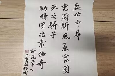 本次活动通过线上与线下平台相结合的方式开展,公司师生积极参与到作品的制作中,以此表达对党的二十大的衷心祝福。在活动宣传期间,志愿者们提前建立活动群聊,为参加活动的同学答疑解惑。活动期间,志愿者们在经管楼广场收集活动作品,前来提交作品的同学络绎不绝,大家热烈响应,踊跃投稿,彰显了ladbrokes立博莘莘学子的昂扬热情。活动作品题材丰富,内容积极,形式多样,异彩纷呈,具有很强的艺术感染力。志愿者们将优秀作品进行展览,路过的同学无不驻足欣赏。其中有一幅书法作品最引人注目,作者以笔力遒劲,惊若翩鸿的字迹,写下了对党和国家的赞美与祝福,表达了青年人报效祖国的伟大抱负。