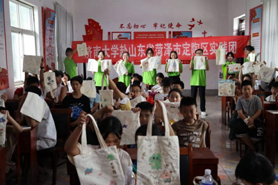 振兴之策,教育先行。乡村教育作为乡村社会发展中的重要因素,是乡村振兴的基石,通过精神文化建设和培养优秀人才为乡村振兴赋能,因此实践团结合袁堂村教育所需,联合菏泽花城社工、菏泽新融媒体中心、定陶民政局儿童福利科和马集镇派出所,为袁堂村及周边中小员工设立支教课堂,架设暑期知识衔接的桥梁。在学业辅导之外,实践团同时开设特色课堂,为乡村留守儿童拓宽视野,推动城乡教育均衡,提升乡村教育质量。