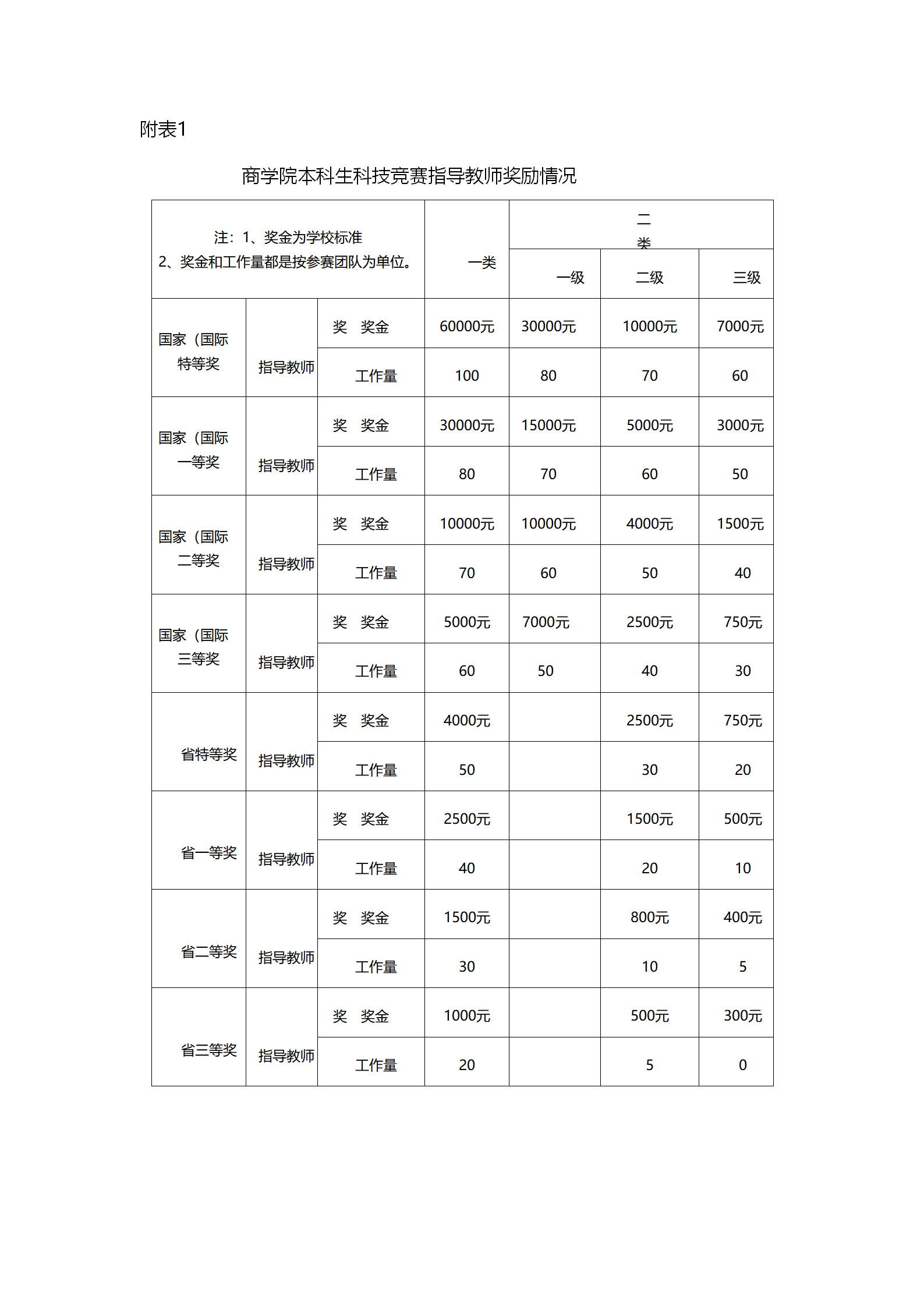 科技竞赛主要指在全国范围内开展的能够体现员工创新素质、创新能力的各级各类重大赛事。依据赛事类别及层次,公司分两类对指导教师进行奖励,一类指“挑战杯”“创青春”“互联网+”员工系列科技学术竞赛,公司按公司奖励额度的50%进行匹配;二类指学科单项竞赛,其中二类分三级竞赛进行表彰,公司按公司奖励额度的50%进行匹配;未纳入公司科创奖励体系的赛事,公司按公司二类三级赛事奖励额度的20%进行匹配。公司具体奖励额度见附表1。