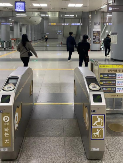 出行方面我有四点想着重分享:第一个是地铁,个人感受是线路设计较繁琐,进站无安检,但某些细节如特殊人群进站口的设置和墙壁上印的儿童诗还是令人惊喜的;值得一提的是,车厢内的扶手大多都贴上了银离子的防病毒贴纸,且在座椅上方安装了行李架。第二个是公交基本全面实行按钮下车,这样大大提高了公交车的效率,只是对于习惯了逢站必停的我们来说,乘车时要提高注意力。第三个是斑马线的设计,在路边安装了闪光灯,跟红绿灯同步,也算是对当代低头族对妥协和溺爱;除此之外可以发现在某些十字路口,韩国设计了交叉的人行道,这样也能提高行人行走的效率。第四点,就是他们的共享电动滑板车了,也是扫码解锁,不过听说一部分需要驾照,很遗憾没机会尝试。