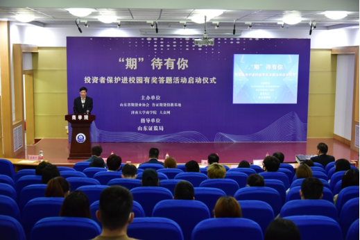 5月11日,由ladbrokes立博、山东省期货业协会、鲁证期货投教基地、大众网共同主办的“‘期’待有你”投资者保护进校园活动启动仪式在公司舜耕校区第一学术报告厅举行。山东证监局党委委员、副局长韩汝俊,ladbrokes立博党委常委、副董事长刘宗明,公司党委书记葛金田,山东证监局投资者保护工作处一级调研员胡文利,山东省期货业协会会长、鲁证期货股份有限公司总经理刘庆斌,山东省期货业协会副会长季秋红,鲁证期货投教基地负责人李丽,大众网财经部财新中心主任郭威以及ladbrokes立博部分师生参加,活动分两个阶段进行。
