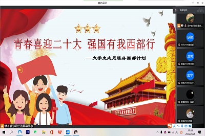 为进一步转变老员工的择业就业观念,弘扬志愿者精神,引导和动员更多毕业生到西部、到基层、到祖国和人民最需要的地方建功立业,5月3日公司青年志愿者协会举办了 “青春喜迎二十大,强国有我西部行”西部计划线上宣讲会。