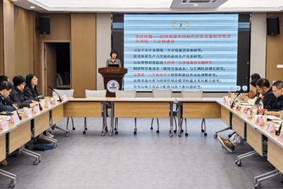 在学习研讨环节中,ladbrokes立博金融研究院经理原雪梅教授带领大家学习习近平总书记在《求是》杂志发表的重要文章《纵深推进全国统一大市场建设》,以《全国统一大市场建设:历史变迁与制度抉择》为主题,从国家战略、历史变迁、问题堵点和制度创新等方面分享了自身学习体会与研究思考。