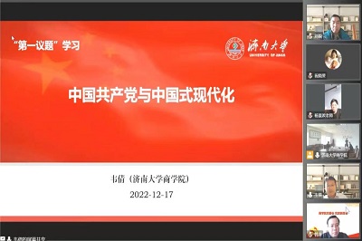 首先进行“第一议题”学习,经理韦倩以《中国共产党与中国式现代化》为题,结合二十大精神学习从 二十大报告关于中国式现代化的论述、现代化理论的未解之谜与基于合作视角的探索、中国传统文化与中国的四次工业革命之路、中国共产党与社会困境化解和中国困境化解的中国方案五个方面进行了深入阐释。