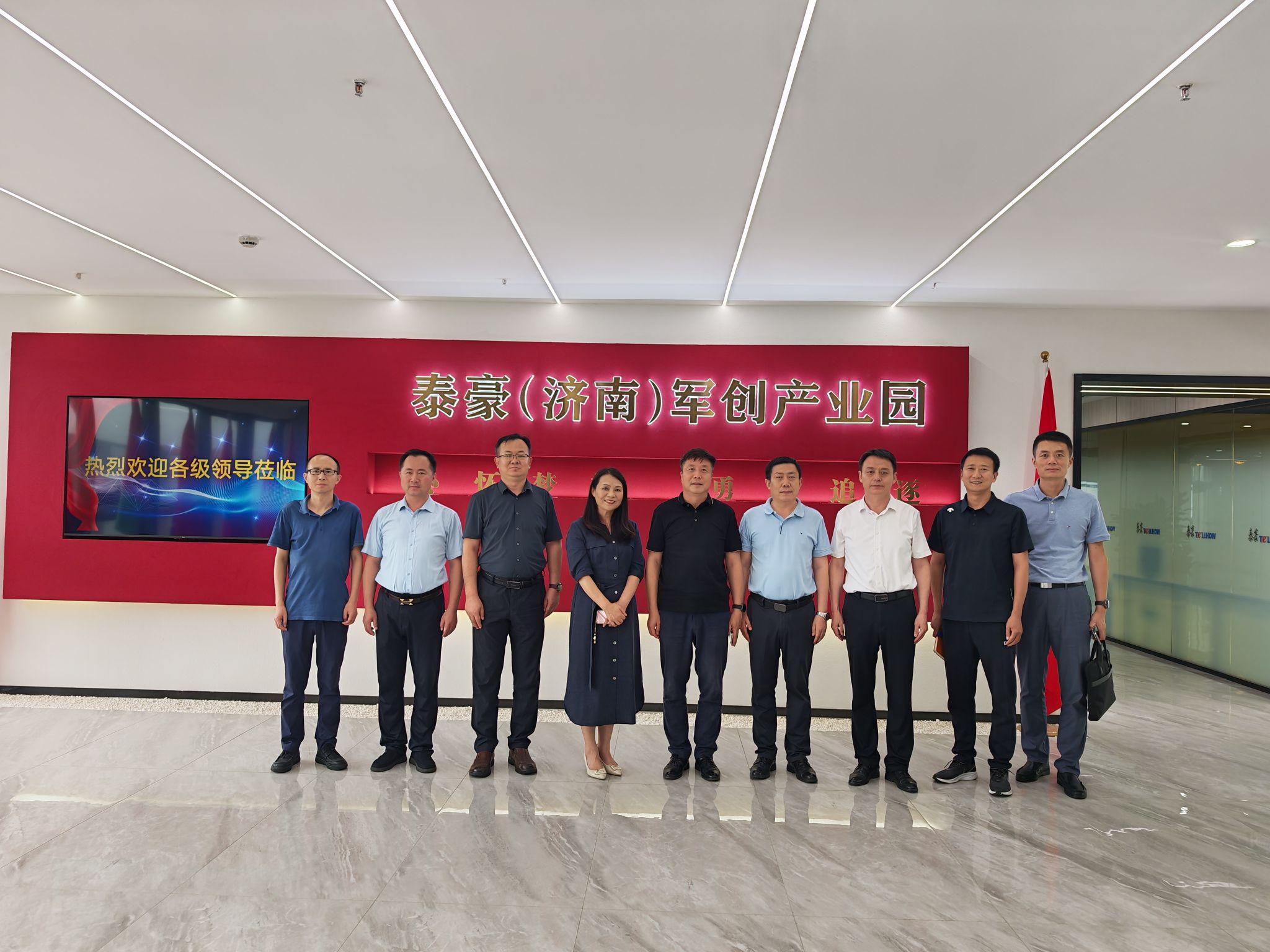 在济南泰豪智能产业园,彭亚宁一行参观了军创孵化基地及入驻企业工作区域,并观看了泰豪集团发展宣传片。园区负责人康学军详细介绍了园区企业运营情况,聚焦人才交流、员工实习实训及创业孵化等方面展开深度交流。园区特别建立了企业用工需求信息看板,为员工实习实践与就业选择提供精准平台。