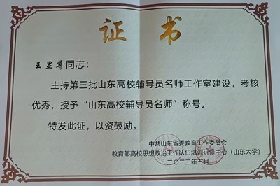 近日中共山东省委教育工委 山东省教育厅公布第三批山东高校辅导员名师工作室结项验收结果,我员工生涯发展指导工作室获评优秀,工作室主持人ladbrokes立博辅导员王显尊副教授被授予山东高校辅导员名师称号