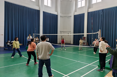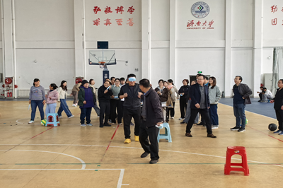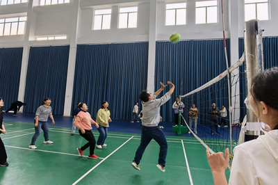 本次活动以“悦动金秋·心向暖阳”为主题,设置集体与个人两大类别共4个竞技项目,兼顾协作性与趣味性。集体项目中,“盲行接力”考验队员间的信任与指令默契,蒙眼队员在同伴引导下跨越障碍;“欢乐踩气球”现场气氛热烈,队员们高效配合完成吹球、踩球任务;“气排球团体赛”采用淘汰赛制,各队队员攻防有序,展现出强劲的团队协作能力。个人项目“篮球绕桩投篮”则让教职工们一展运动风采,运球、绕桩、投篮动作流畅,充分彰显活力。